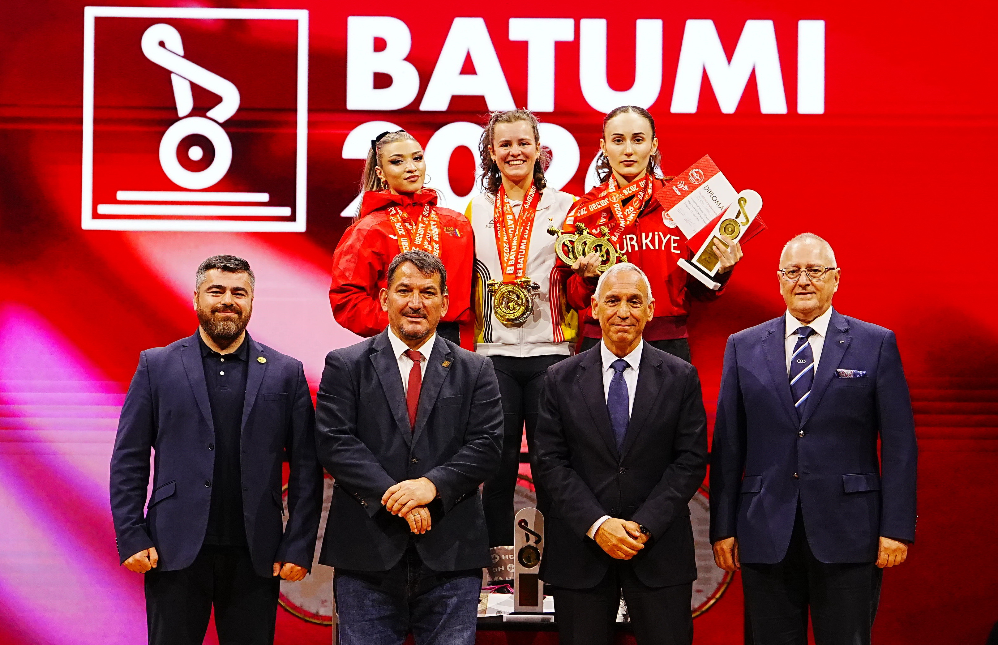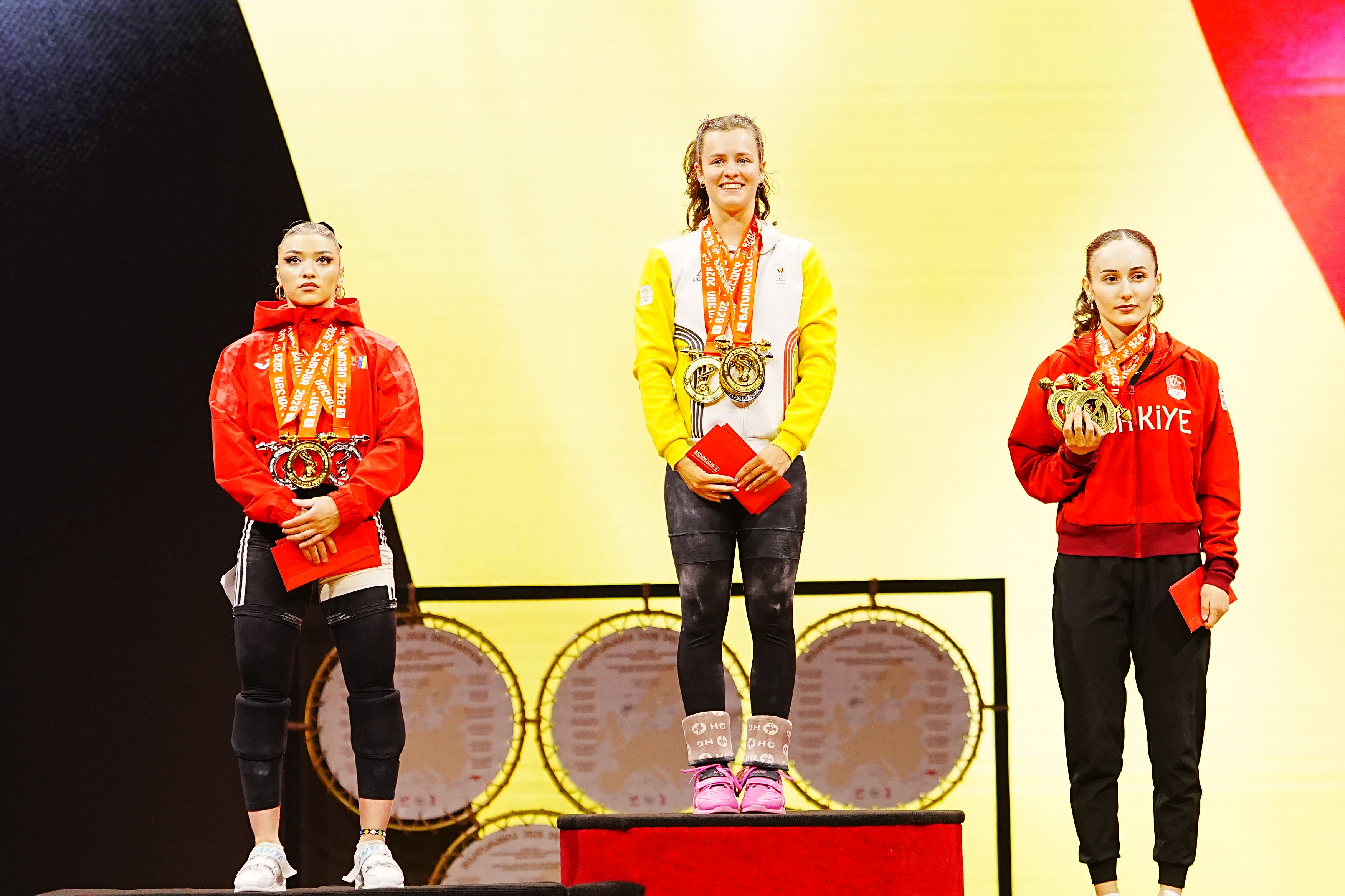 წონის ლიდერი გახდა ბელგიელი ნინა შტერქსი, რომელმაც ატაცში 94 კილოგრამით მეორე ადგილი დაიკავა. ბელგიელი საუკეთესო იყო აკვრაში, სადაც 116 კილოგრამის დაძლევით ევროპის რეკორდი დაამაყარა და პირველობა მოიპოვა, ასევე ოქროს მედალი ერგო ორჭიდის ჯამში დაგროვილი 210 კილოგრამით, რაც ასევე ევროპის რეკორდია.