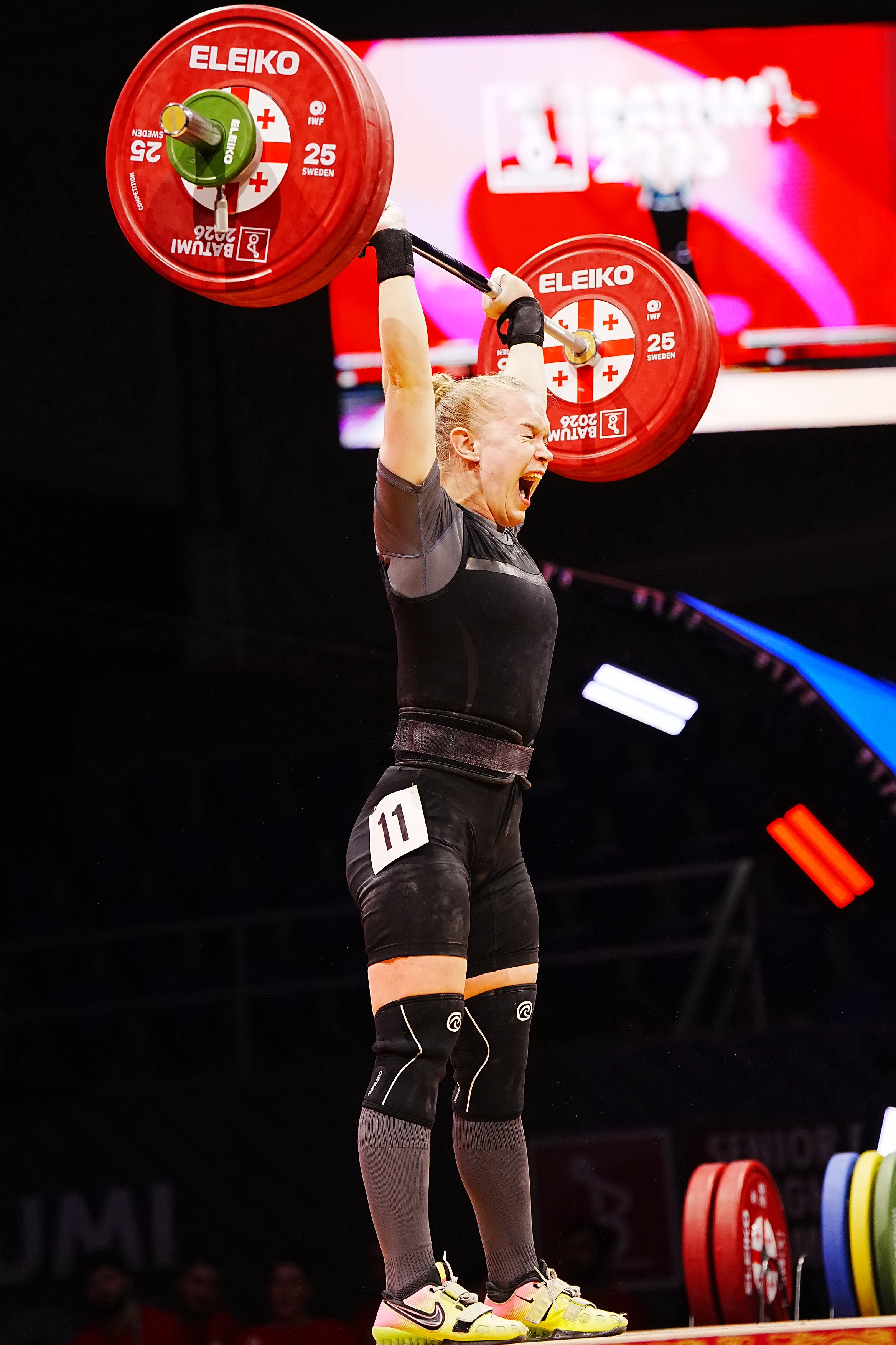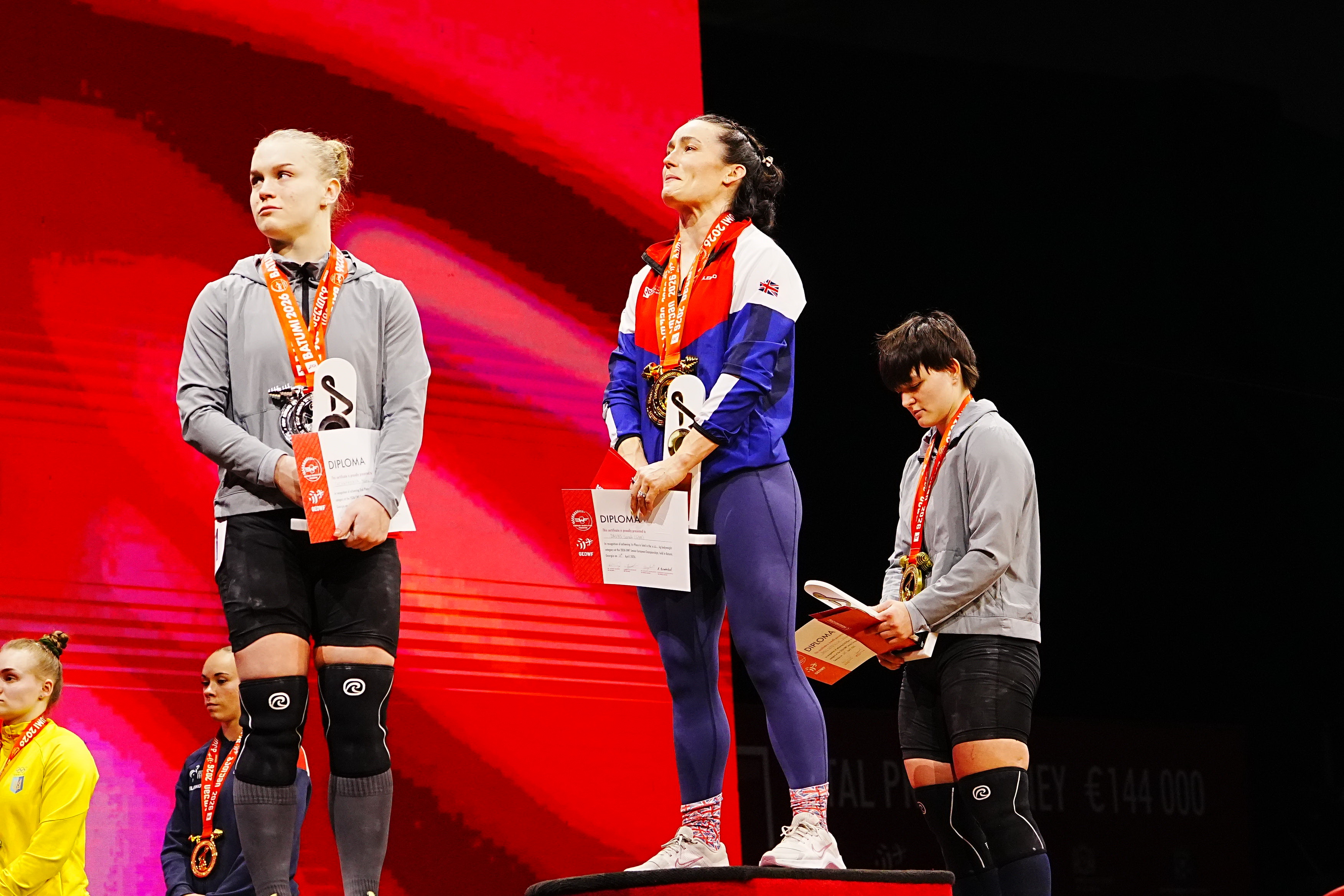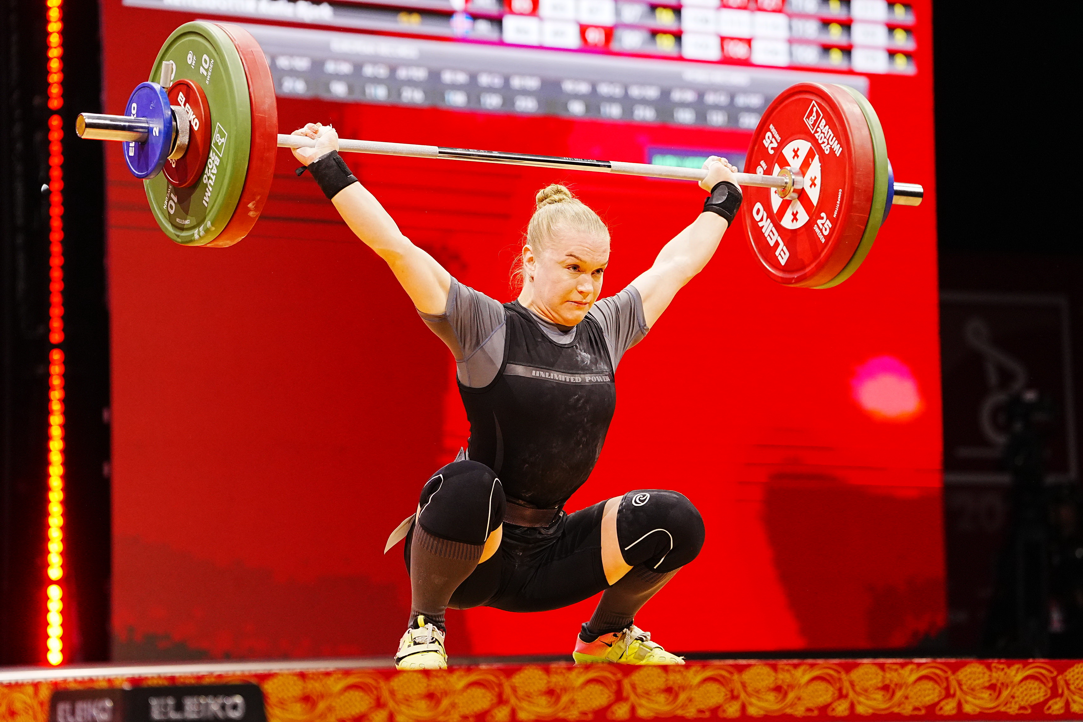 ატაცისა და აკვრის ჯამში (218) ბრიტანელს კილოგრამით ჩამორჩა ნეიტრალური ათლეტი ალინა შეპანოვა, რომელიც ატაცში (96) მეექვსე იყო, აკვრაში (122) კი მეორე.