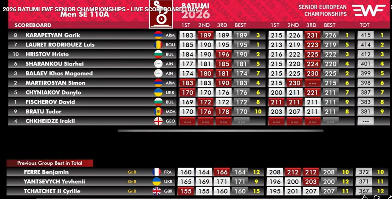 ძალოსნობაში ევროპის ჩემპიონატის ბოლოს წინა დღეს მედლები გათამაშდა ვაჟთა 110 კილოგრამ წონითი კატეგორიაში. მონაწილეთა შორის უნდა ყოფილიყო საქართველოს ნაკრების წევრი ირაკლი ჩხეიძე, თუმცა სპორტსმენმა ფიცარნაგზე გასვლაზე უარი განაცხადა, მიზეზად კი წელის ტრავმა დაასახელა. მიუხედავად იმისა, რომ ქართველმა გულშემატკივარმა ფიცარნაგზე ირაკლი ჩხეიძე ვერ იხილა, უშეღავათო ორთაბრძოლების გარეშე მაინც არავინ დარჩენილა.