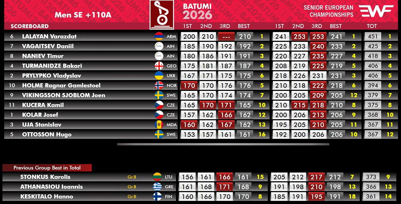 სომხეთის წარმომადგენელი საუკეთესო იყო ატაცში (210), აკვრასა და ორჭიდის ჯამში.